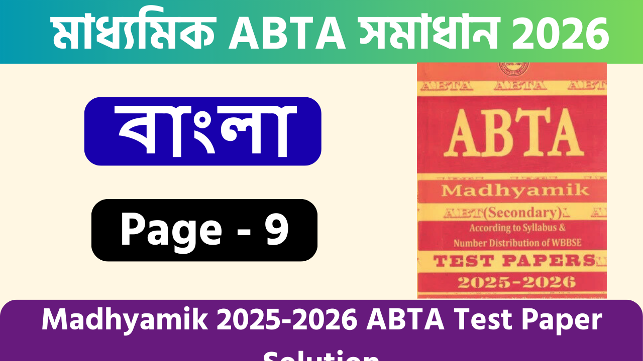 প্রিয় ছাত্রছাত্রীরা, এখানে আমরা ABTA Test Paper Class 10 Bengali Solution নিয়ে এসেছি 2026 এর Page 9 এর জন্য। তোমরা যারা ২০২৬ এ মাধ্যমিক পরীক্ষা দেবে তাদের জন্য আজকের এই পোস্টটি খুবই গুরুত্বপূর্ণ। আশা করি এই সমাধানটি তোমাদের পরীক্ষার প্রস্তুতিতে অনেকটাই সহায়তা করবে।