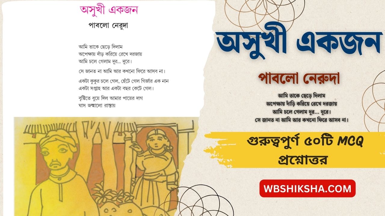 অসুখী একজন কবিতার MCQ প্রশ্ন উত্তর | Asukhi Ekjon Question Answer MCQ | Class 10 | Wbbse