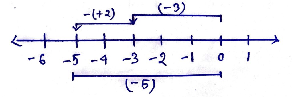 দ্বিতীয় উদাহরণ : (-3) – (+2) = [ ]