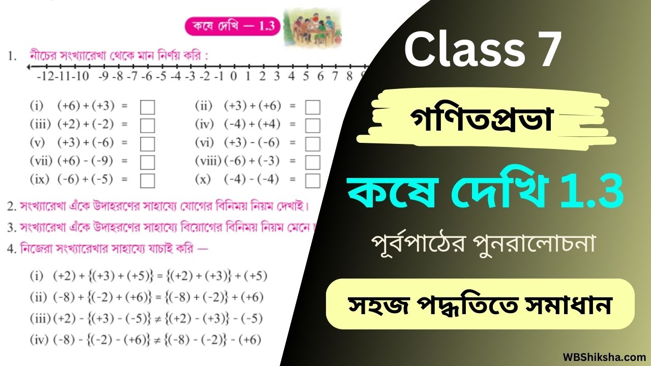প্রিয় ছাত্রছাত্রীরা এই আর্টিকেলে আমরা Koshe Dekhi 1.3 Class 7 Solution নিয়ে এসেছি। তোমাদের সপ্তম শ্রেণির গণিতপ্রভা পাঠ্যবইতে পূর্বপাঠের পুনরালোচনা অধ্যায়ে কষে দেখি 1.3 থেকে কিছু অঙ্ক রয়েছে। সেগুলির খুবই সহজ সমাধান আমরা এখান করে দিলাম। আশা করি সবার ভালো লাগবে।